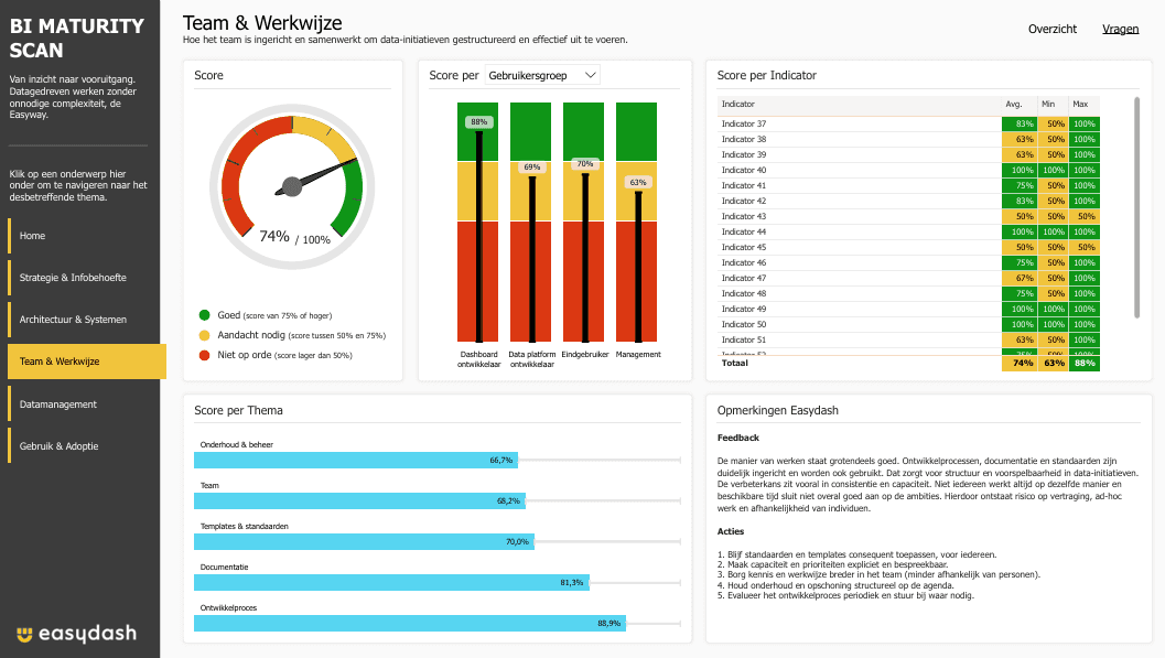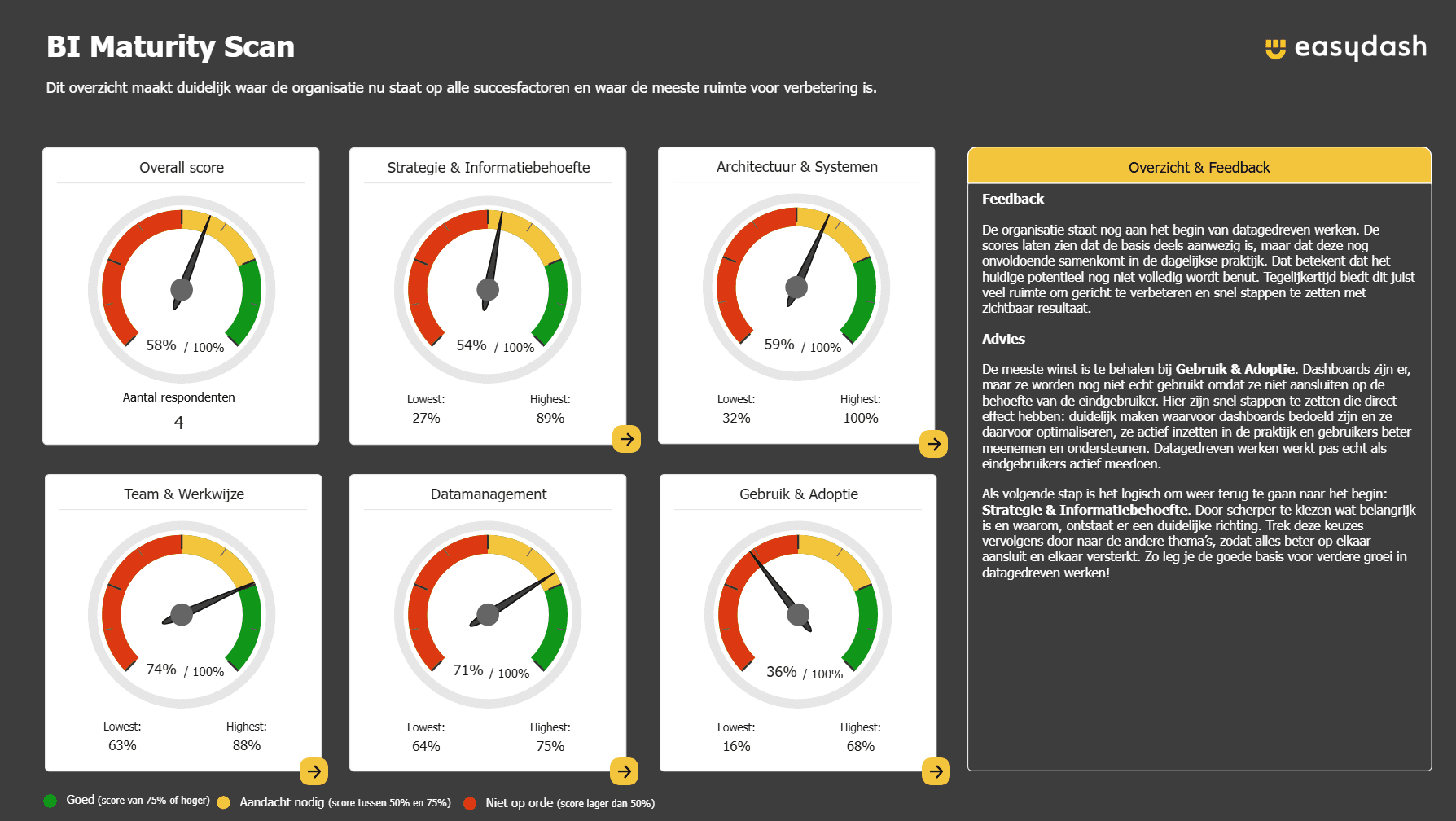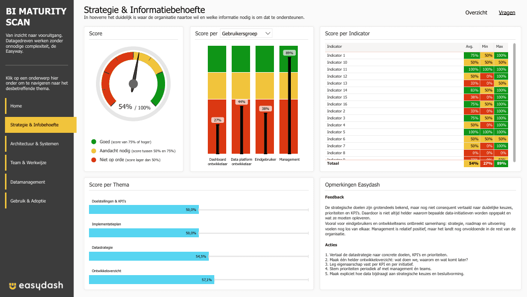 Krijg in één oogopslag inzicht in waar jullie staan – en wat er nodig is om slimmer te sturen op basis van data.